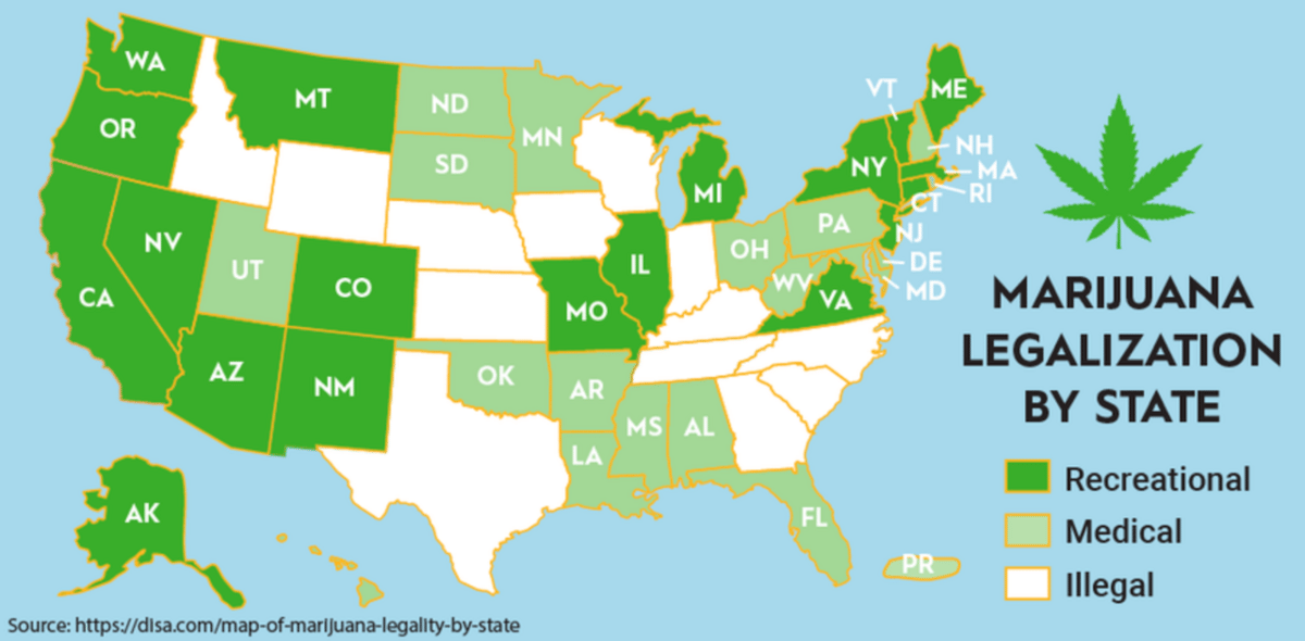 Since then, medicinal cannabis use has been legalized in 39 states and DC, while the number of states where adults can legally enjoy it stands at 22.