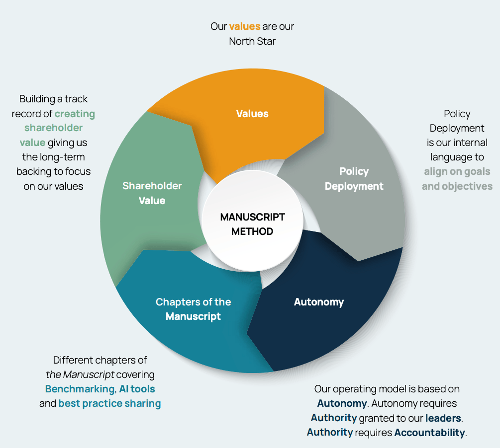 The Manuscript Method is essentially an operating system built around a simple trade-off: autonomy in exchange for accountability. Local management teams retain full responsibility for running their businesses, keeping decisions close to the customer and the market they operate in.