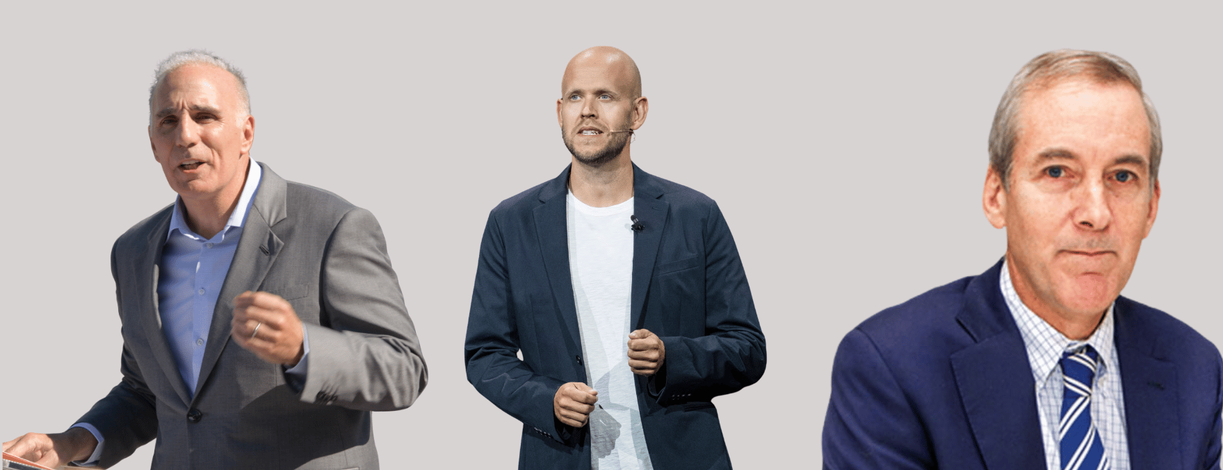 Mitch Rales (Left), Daniel Ek (Middle), William Thorndike (Right)