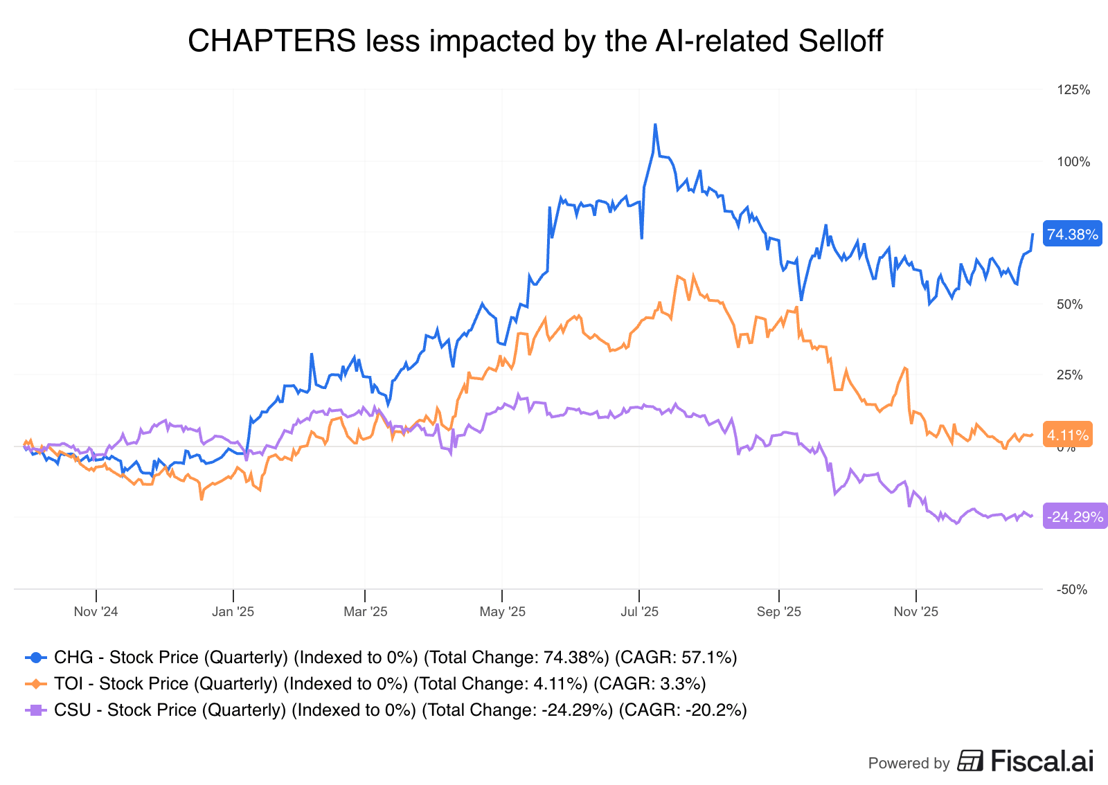 Having said all that, Chapters has surprisingly been spared from the AI-related selloff that companies like Constellation and Topicus have seen anyway.
