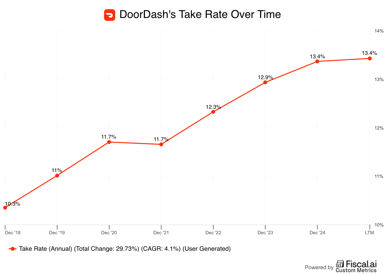 From 2018 to the last twelve months, Dashβs net revenue margin rose from about 10% to 13.4% β a 30%+ increase β primarily due to advertising. Because ads monetize attention, not just fulfillment, each extra dollar there carries higher incremental margins.