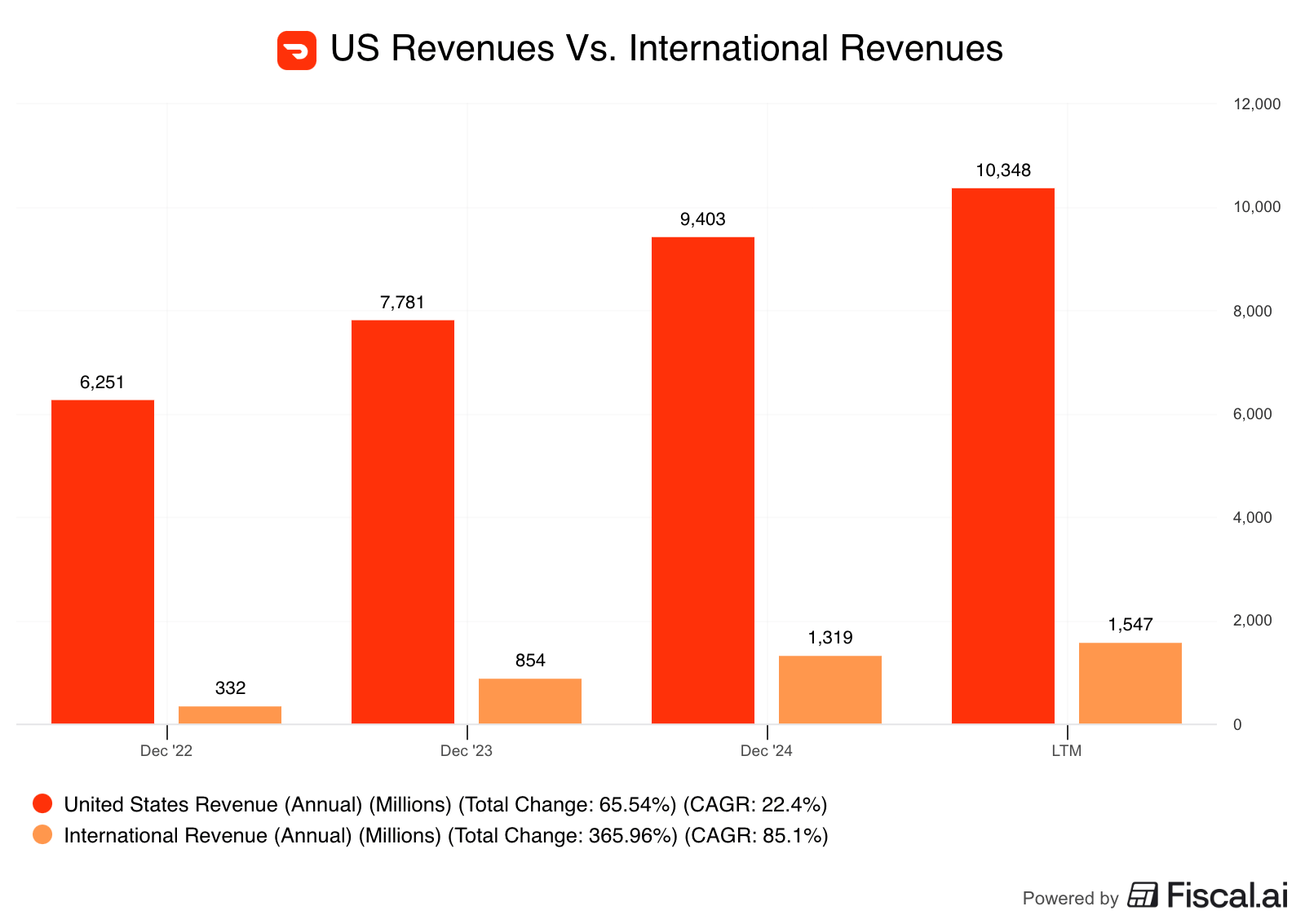 Theyβve already facilitated more than $88 billion of gross order value (GOV) over the past year globally β roughly neck-and-neck with Uber Eats worldwide but with a larger market share in the U.S. β with the ambition of handling a much wider surface area of last-mile demand. If they execute on that, the economics look less like a meal-delivery app and more like something that could begin to rival Amazon(!)