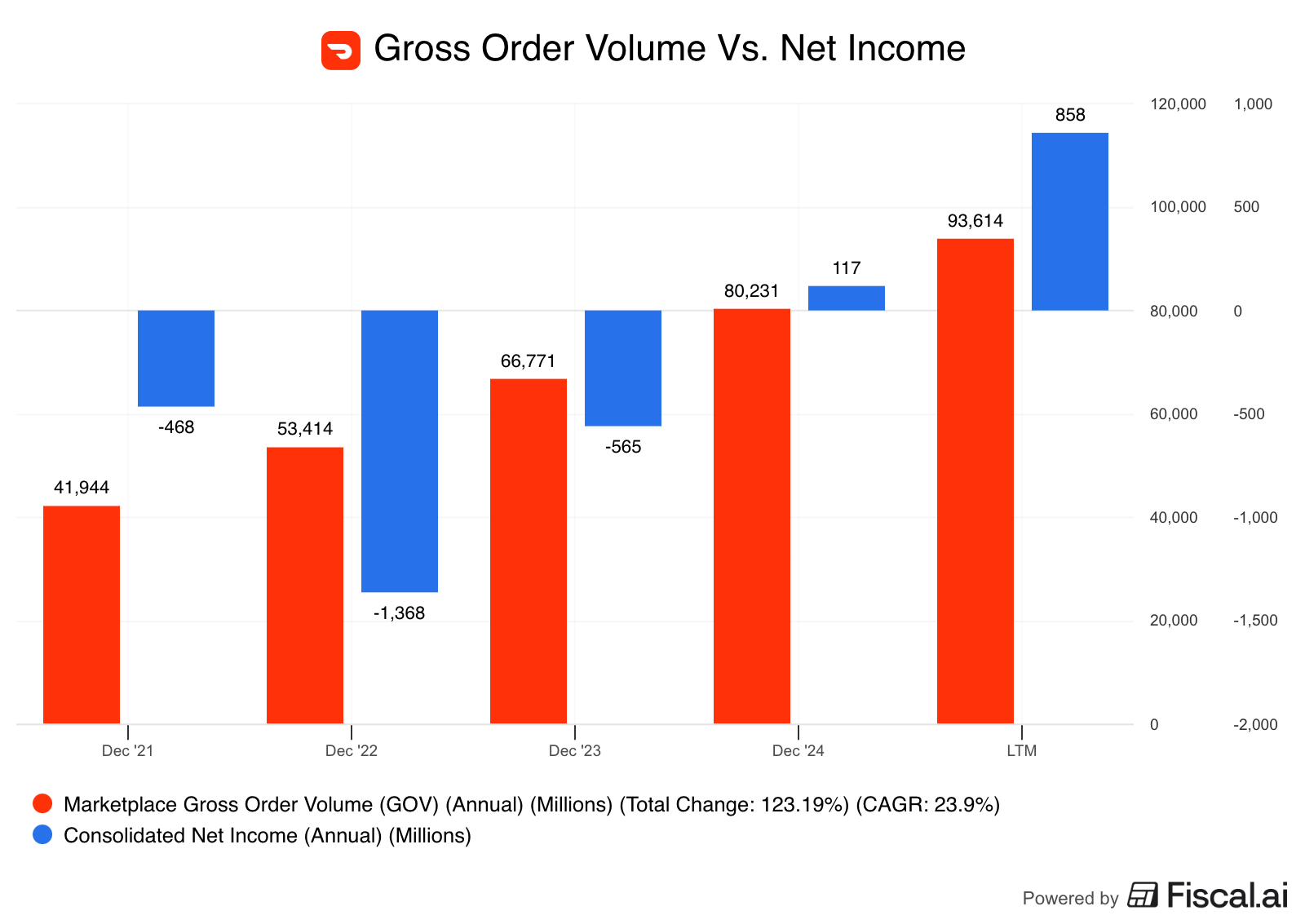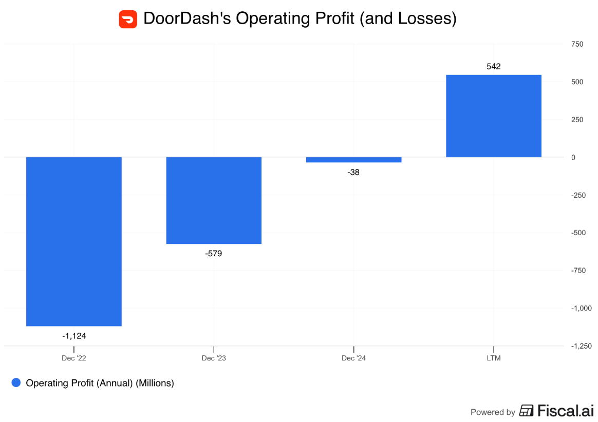 Perhaps you can see now why scale is so important. With more orders, those overhead costs can be spread across a larger revenue base, and with enough scale, you can actually eke out an accounting profit. To be precise, it took more than $80b of gross order value for Dash to generate a GAAP profit for the first time last year(!)