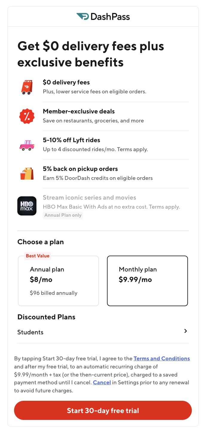There are some other wrinkles to be aware of here, though. To drive more customer loyalty, which enables more efficient order batching and better profitability per order, DoorDash has its subscription program called DashPass, offering zero delivery fees (but you still have to tip!) with extra discounts and credits, as well as discounts on Lyft via a partnership program (a not so subtle attempt to try and mirror what Uber offers through Uber One memberships to ride-hailers and Uber Eatsβ customers).