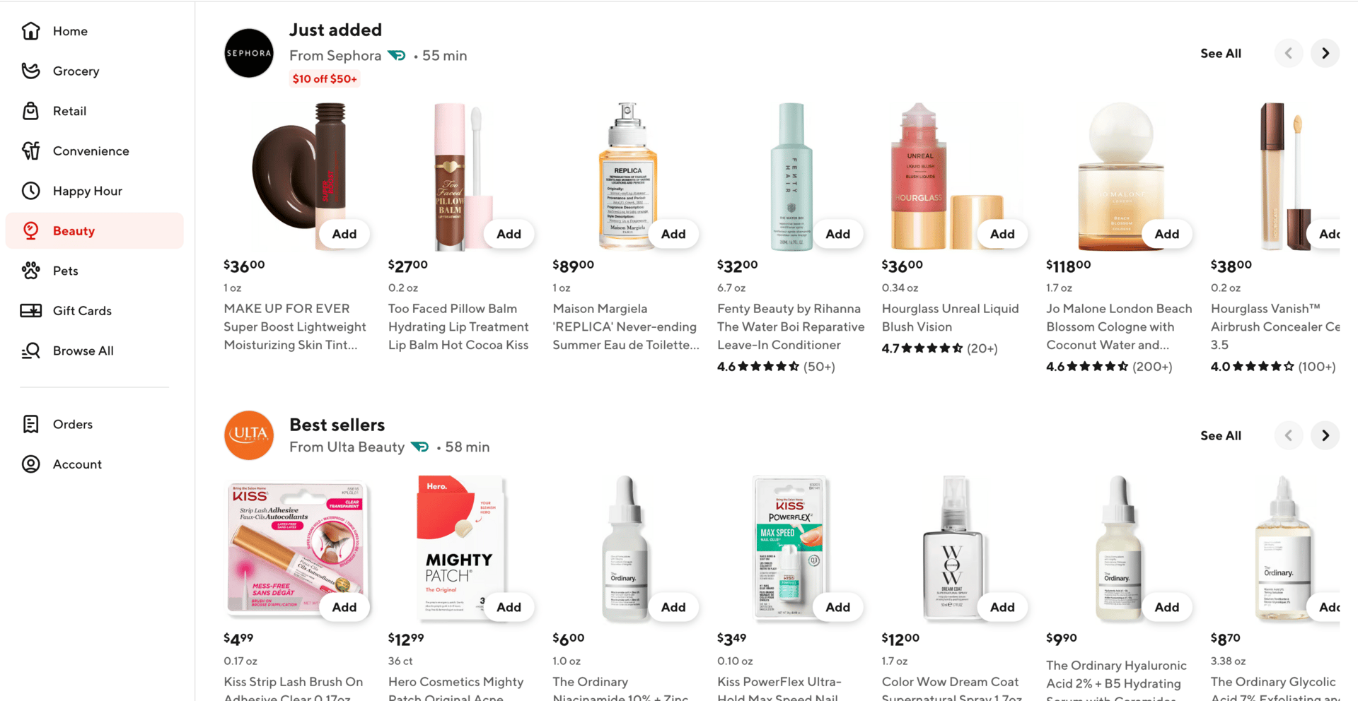 A sampling of products that you can now have DoorDashed