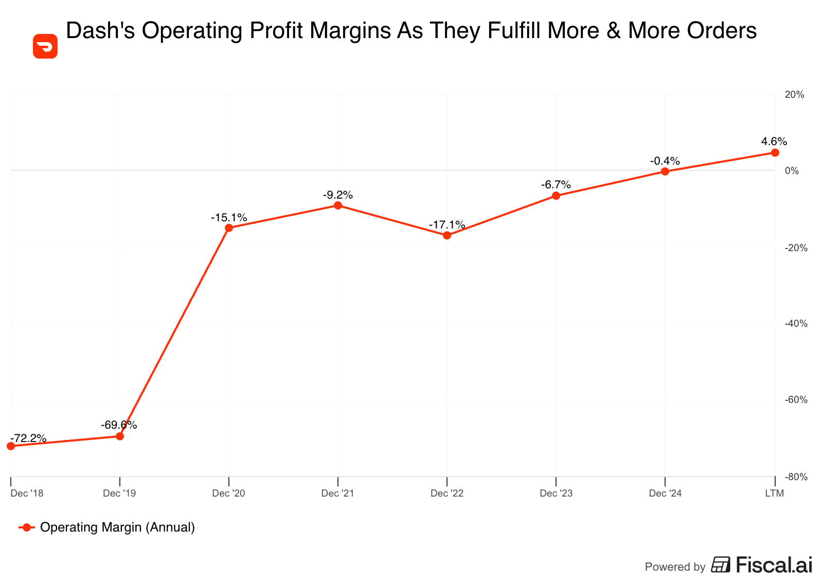 Between a fast-growing subscription business, dramatically scaling order volumes, improved ad targeting, and DoorDash Drive restaurant partnerships, this is how you get a business that has compounded revenue by 50% per year over the last 5 years, with operating profit margins that have swung from -15% to ~5% in that same time.