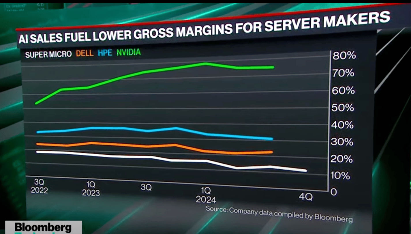 Margin Comparison between Nvidia, Dell, HPE, and Super Micro