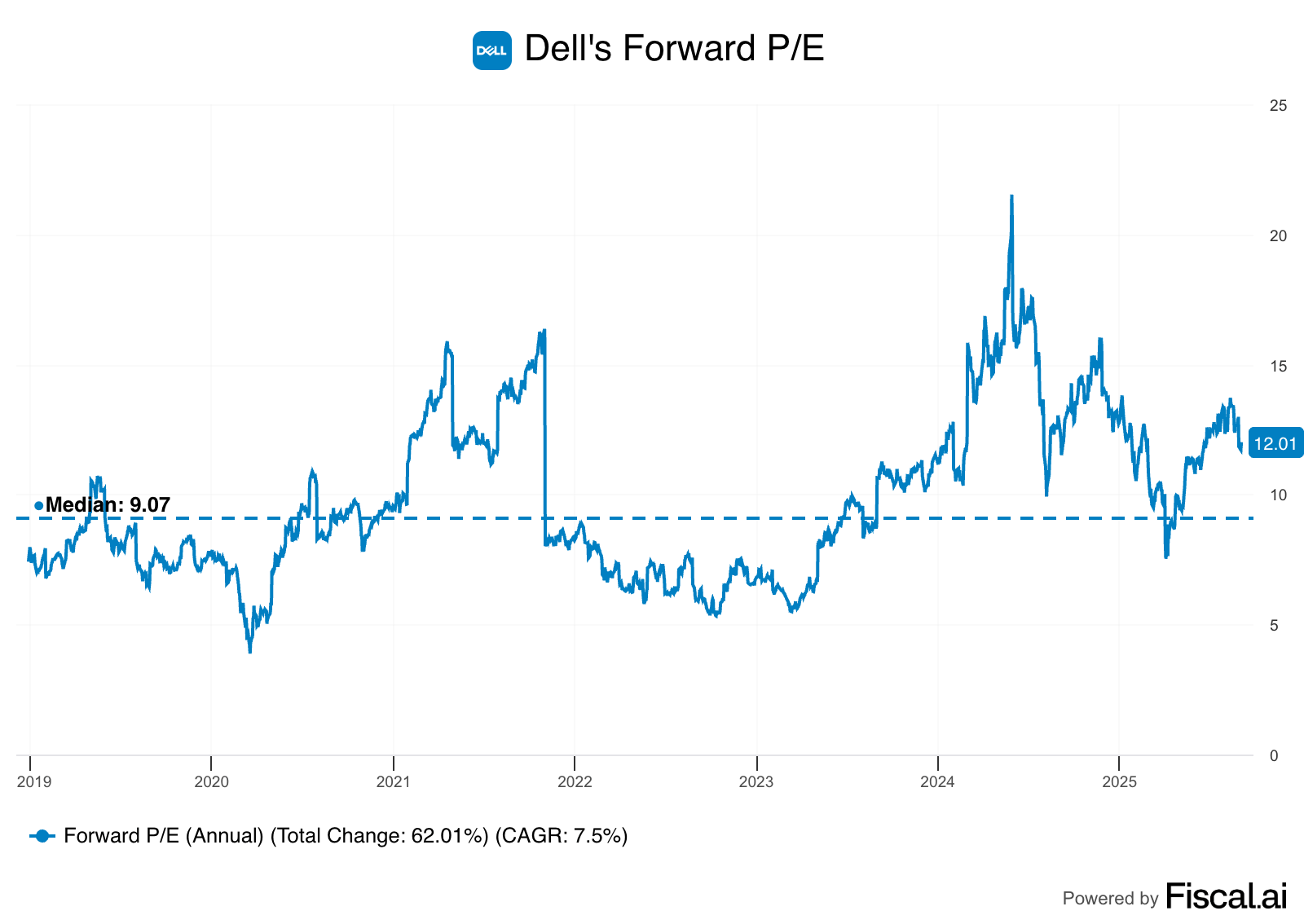 On the surface, Dell trades like a mature hardware company. At a share price around $120, the stock is valued at roughly 12x forward earnings and a bit more than 12x free cash flow. For a business tied into one of the fastest-growing technology trends in the world, that looks modest.