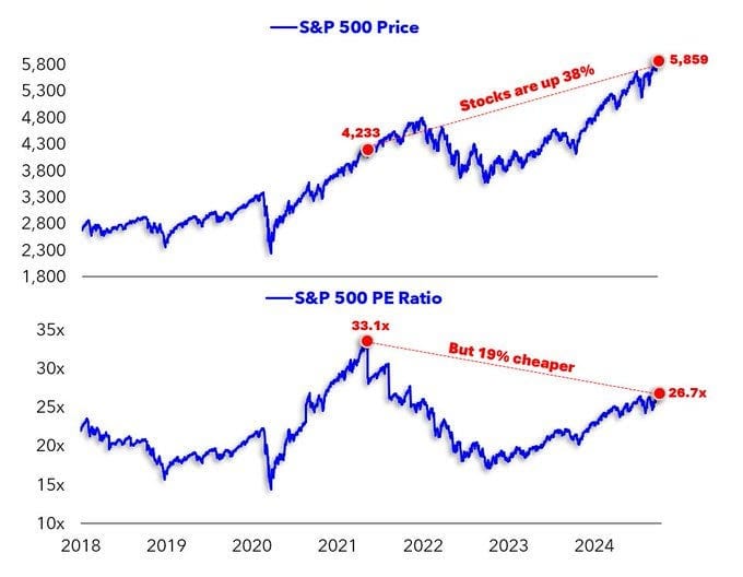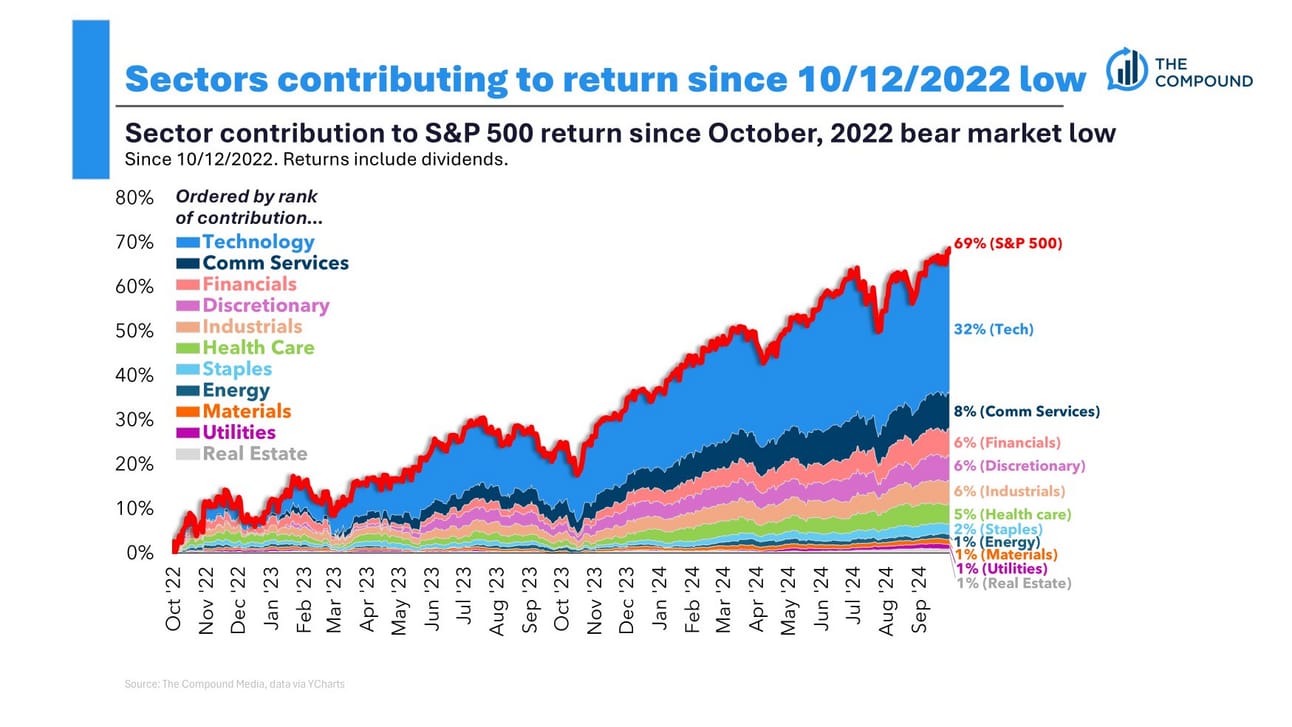 When accounting for reinvested dividends, the U.S. stock market has now been up over 70% since the indexβs Oct 13, 2022 bottom of 3,492.