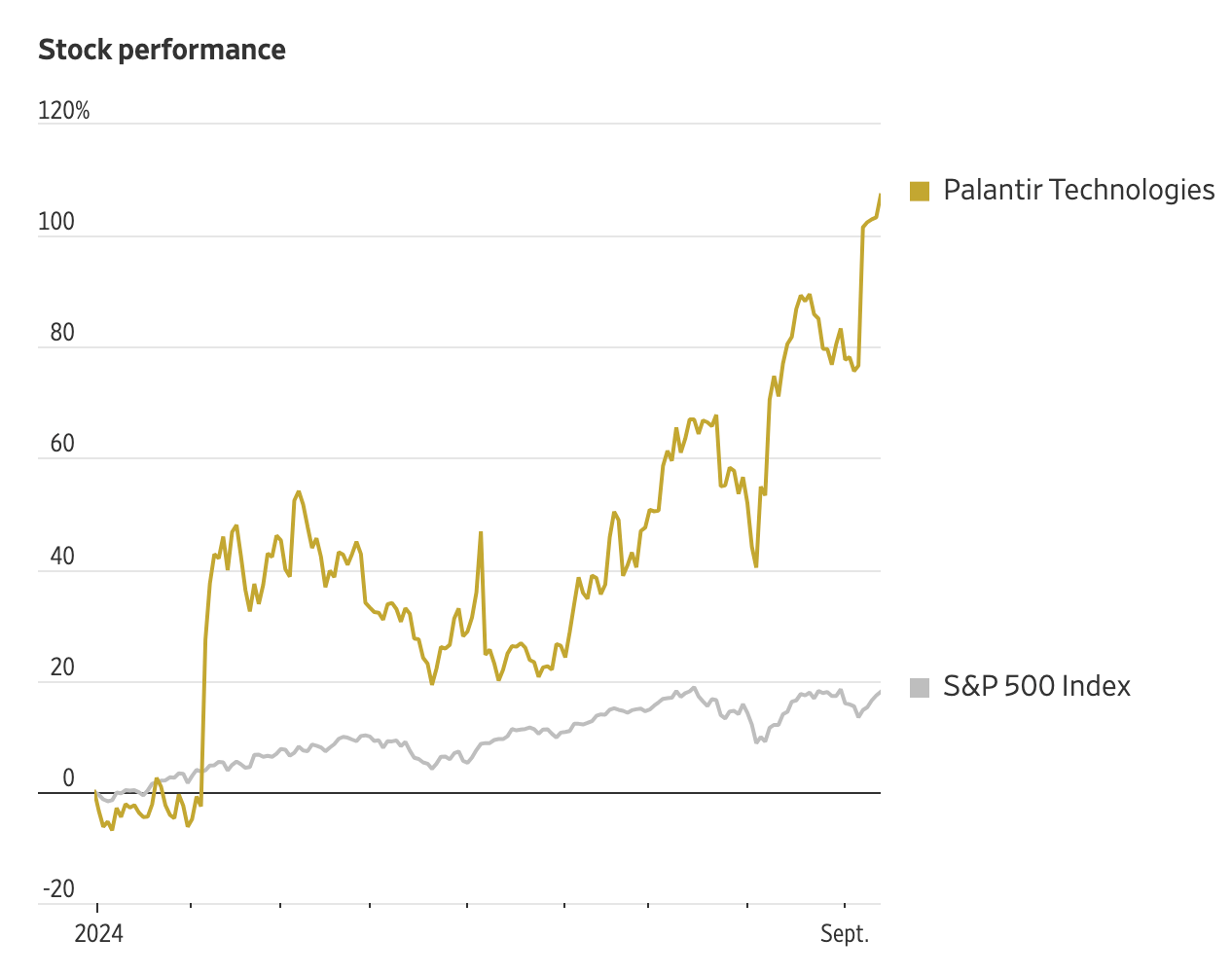 What a ride it has been for Palantir. Shares in the data analytics company, set to join the S&P 500 later this year, have more than doubled this year.Β