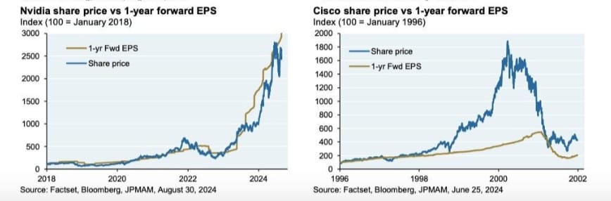 I/O fund tech analyst Beth Kindig β a long-time Nvidia bull β recently shared these charts on X, courtesy of JP Morgan Asset Management. As you can see, while Nvidiaβs surge has prompted questions about its fundamentals, the chipmakerβs earnings have kept pace.