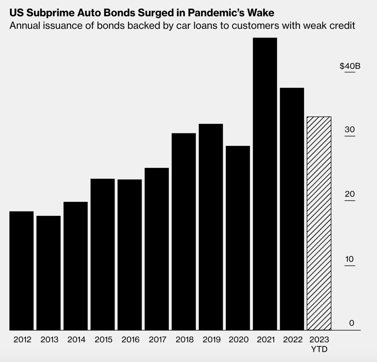 OK, in English, please: Capital Group and Bank of New York Mellon Corp. use car loans they make to people with bad credit to back bonds, from which they can earn handsome yields. Last year, the car loans backed more than $37 billion of bonds, twice the value as a decade before, according to Bloomberg.Β