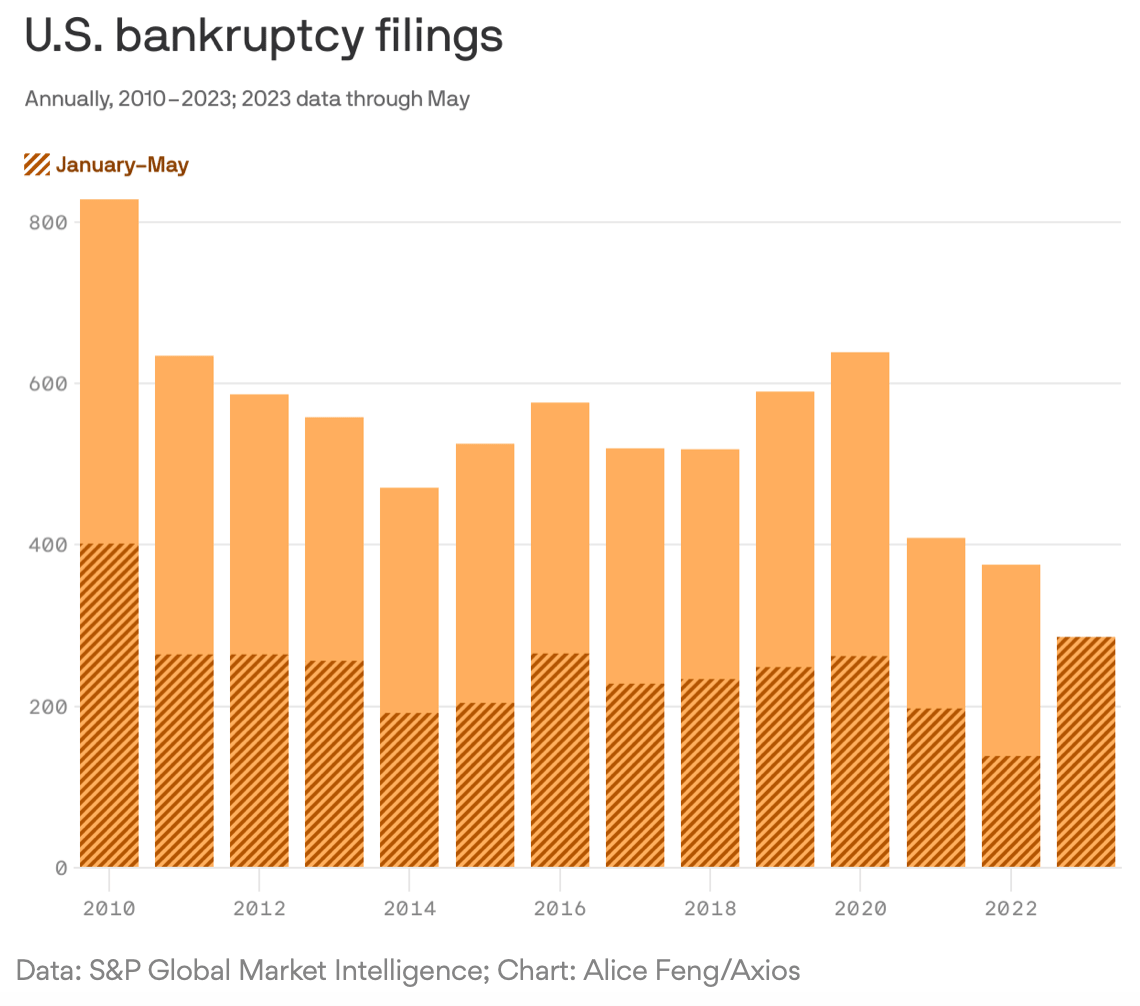 Axios reports that bankruptcy filings so far this year are at levels not seen since 2010, when the economy was still reeling from the Great Financial Crisis.