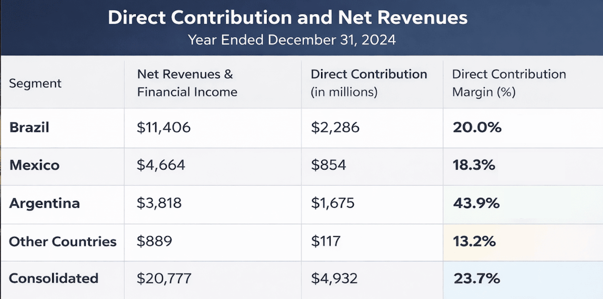 Markets like Brazil and Mexico are still in heavy build-out mode. Argentina, where much of the logistics infrastructure is already in place, shows what happens on the other side of that investment curve: lower incremental capex and meaningfully higher contribution margins.