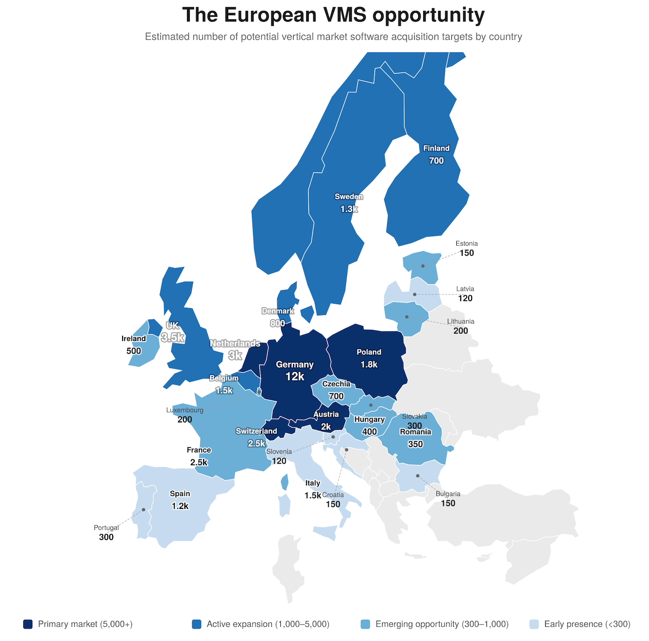 The European VMS market has historically been extremely difficult to consolidate at scale for three reasons. First, fragmentation across languages, cultures, and regulations limits most software to a single country. Second, few acquirers had both the capital and operational capability to execute truly pan-European deals. And third, European founders have traditionally been skeptical of financial buyers, preferring to sell to organizations that would maintain employment and cultural continuity.