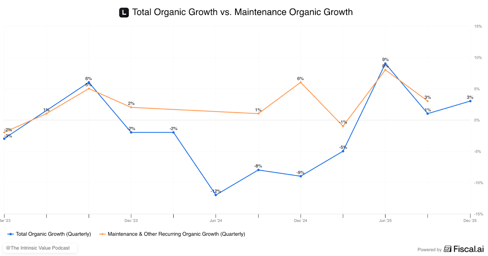That lumpiness shows up in the organic growth figures, too. Lumineβs organic growth is weaker than Constellationβs or Topicusβs, and there are years when it turns negative. The reason for that lies, once again, in the carve-out mechanics.