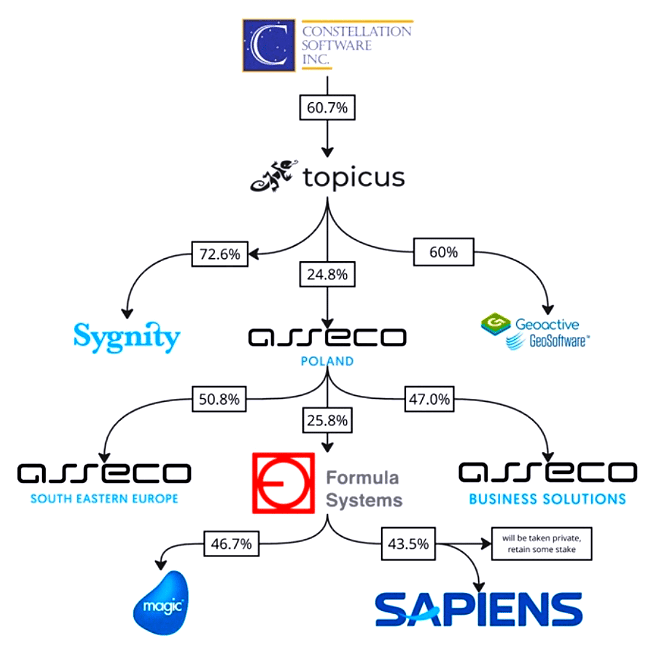 Despite appearing different in this graph, CSU βonlyβ owns 30% of Topicus's economic interest. Through super voting shares, it owns 50.1% of voting rights, though.