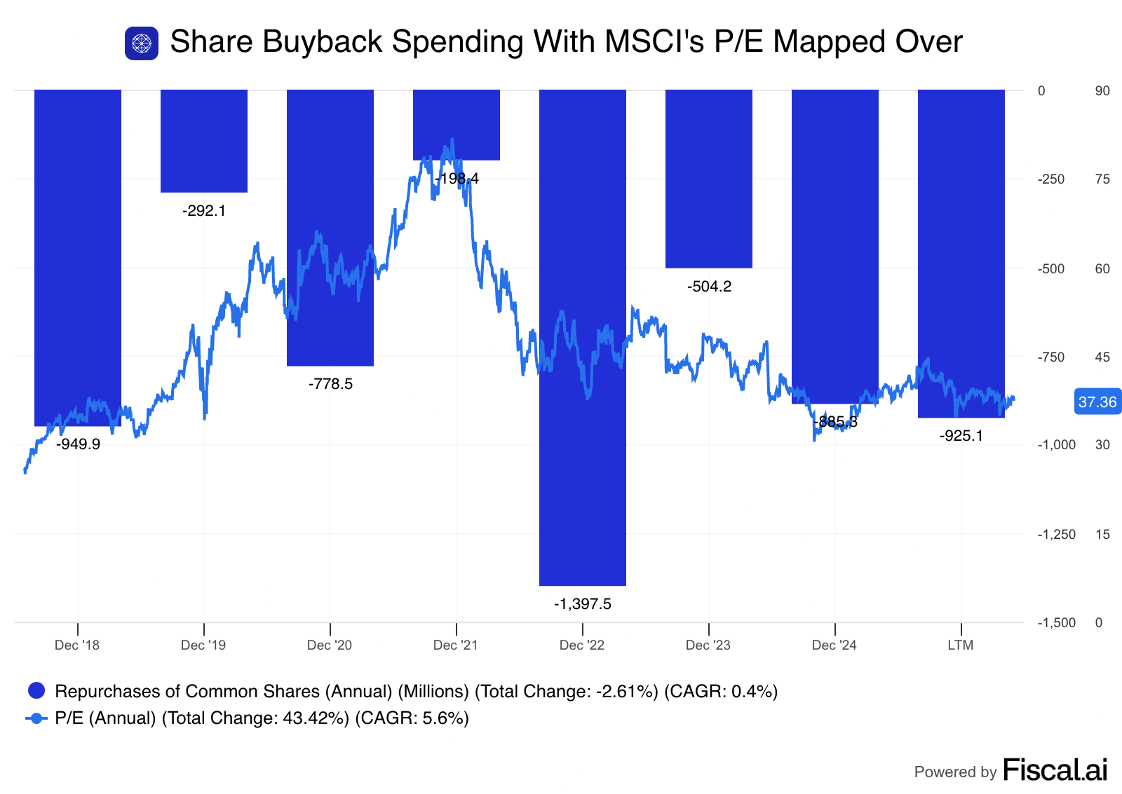 MSCI increases its buybacks (repurchases) when the stockβs P/E is lower