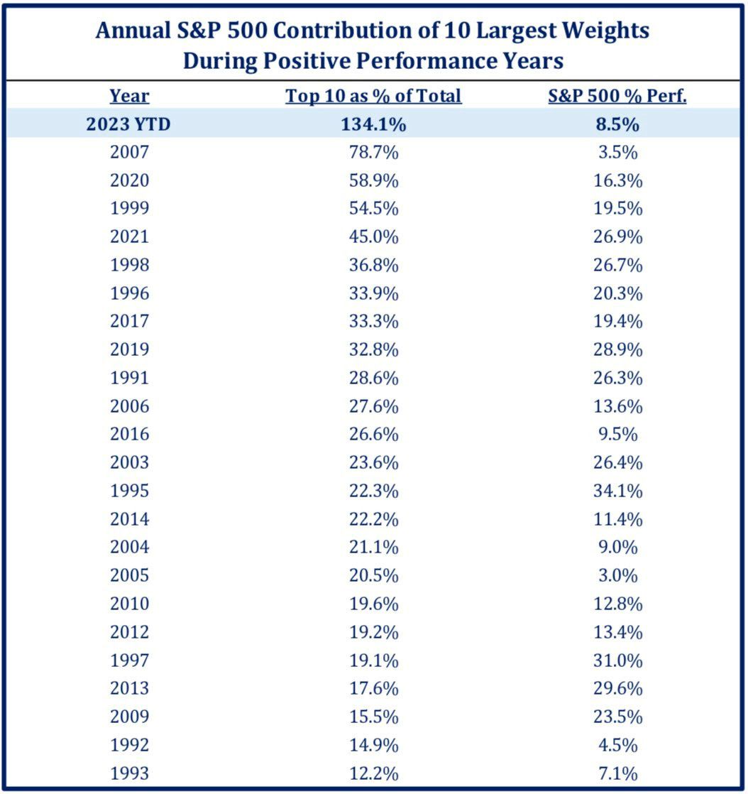 Itβs rooted in fact: The top 10 stocks in the S&P this year have contributed more than 100% of the indexβs return year-to-date.