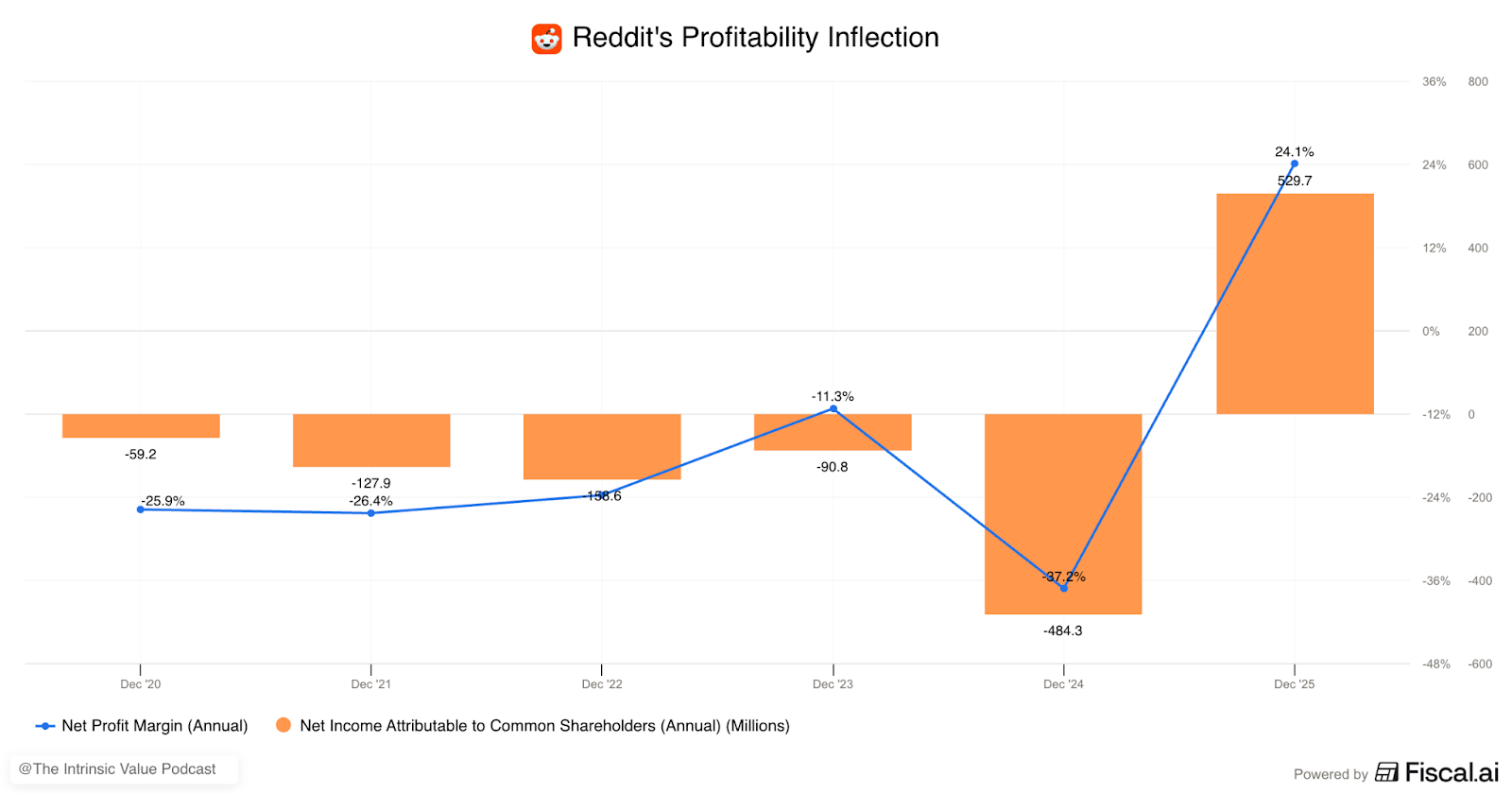 If we zoom out a bit, net income margins went from -37% in 2024 to 24% in 2025. In Q4 alone, margins hit 34%. Revenue growth was close to 70% for the year as well. I'm not sure I've ever seen that kind of margin transformation at a company of this scale, even after adjusting for some one-time IPO costs in the prior year that pushed margins even further down.