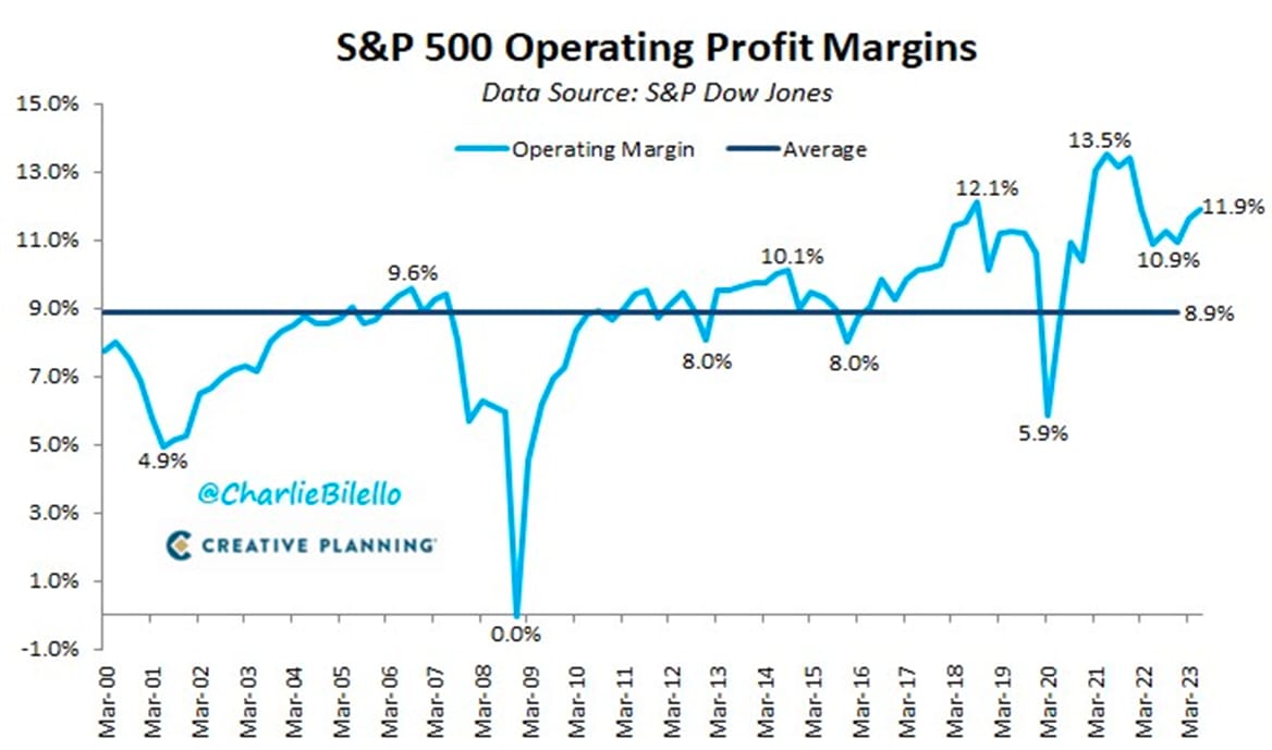 π Berkshire isnβt the only company performing well: Believe it or not, S&P 500 profit margins expanded to 11.9% last quarter, the highest since early 2022 and way above the historical average.