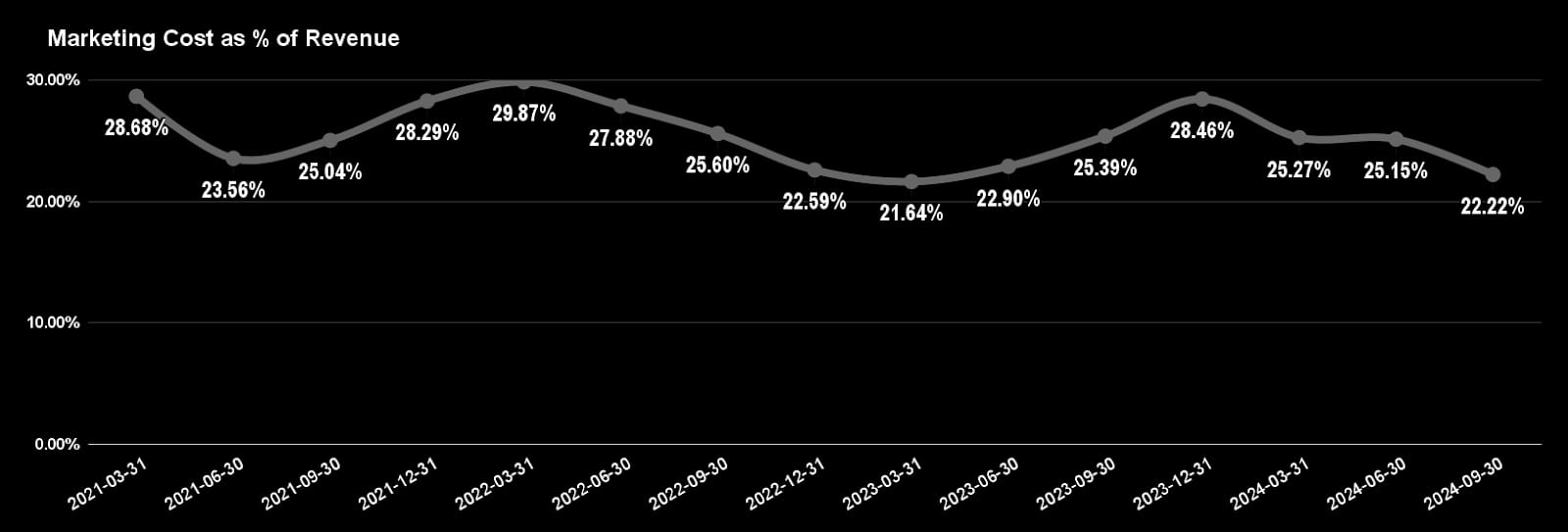 Remitly followed a similar path. It used to spend around 40% of its revenue on marketing. That figure has now come down to about 20β25%.