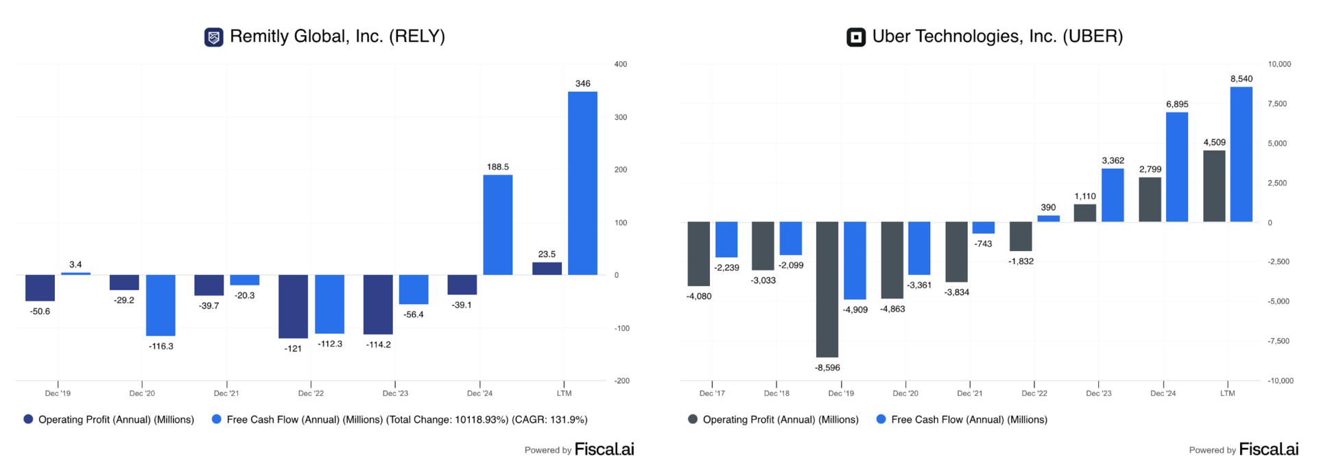 But getting back to Remitlyβs financials. You might have noticed in the graph comparing Remitly to Uber that FCF looks significantly larger than profits. The reasons are accounting gimmicks related to working capital.