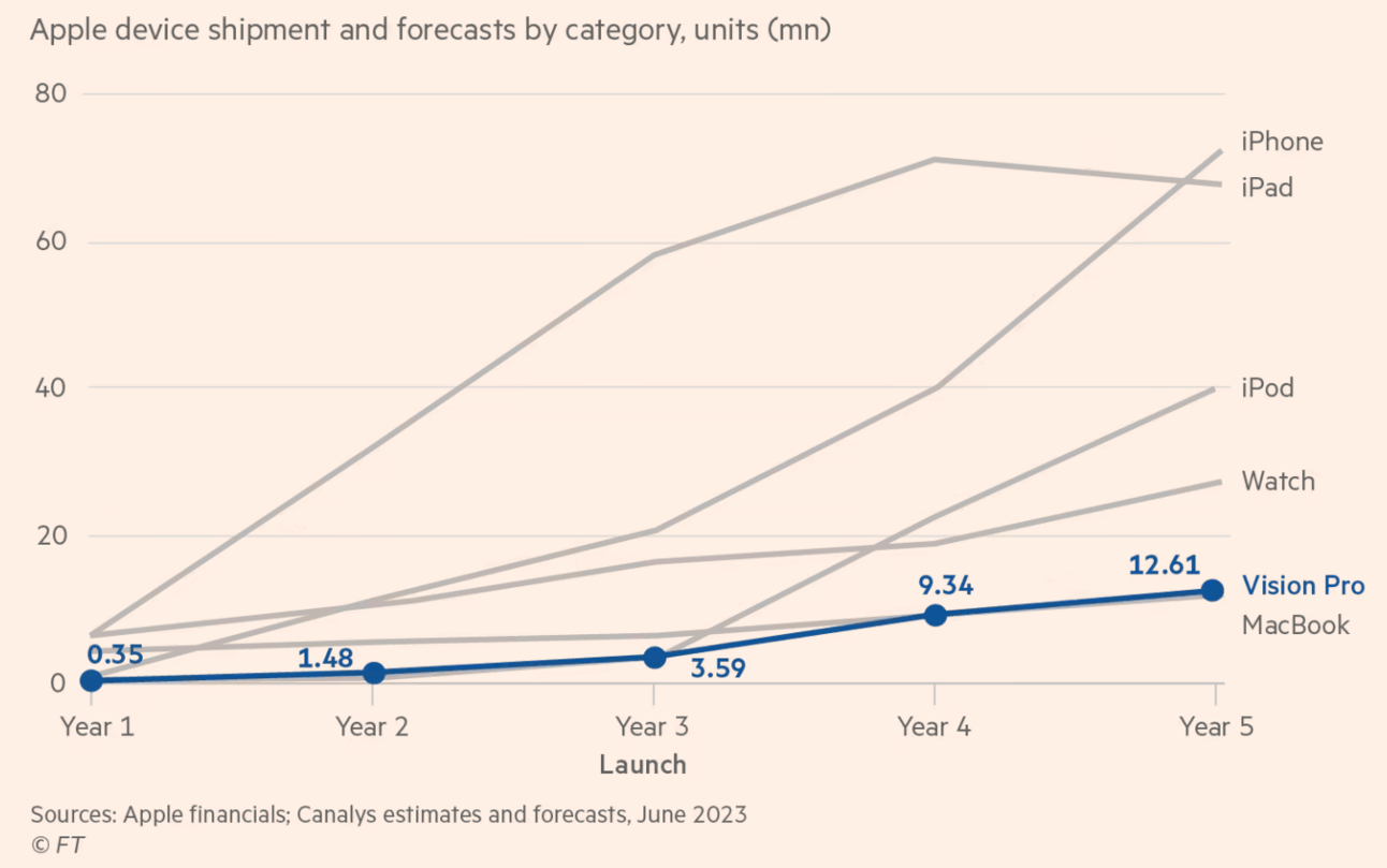 Some analysts are optimistic, projecting that the Vision Proβs user base will surpass 12 million within five years of its launch. Thatβs far less than its unit sales for other products, though it comes at a higher price point.