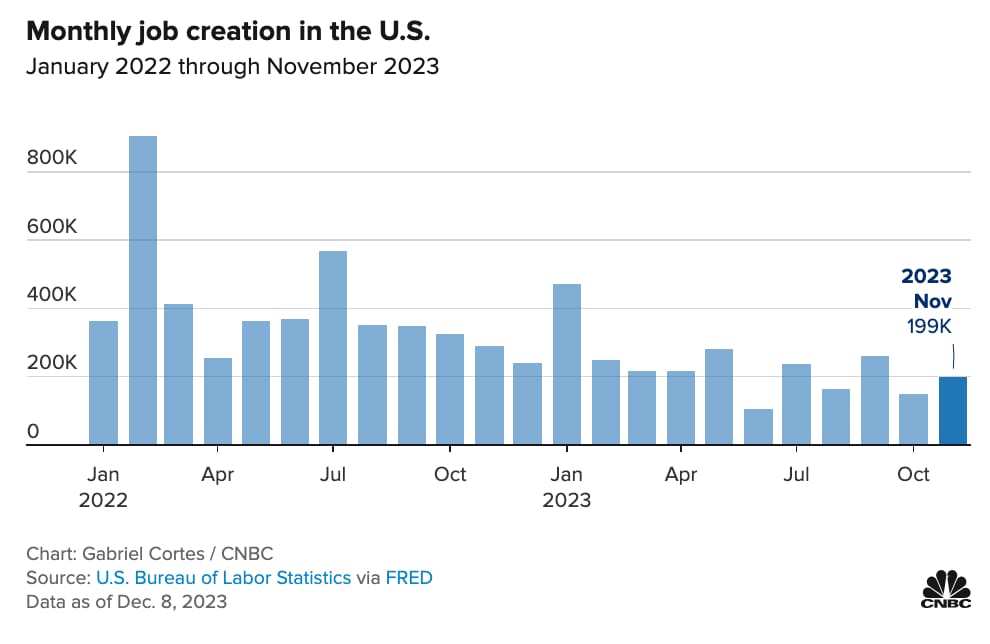 Enter Novemberβs job report. The economy added almost 200,000 jobs in November, better than economistsβ estimates of 190,000 and up from Octoberβs 150,000.