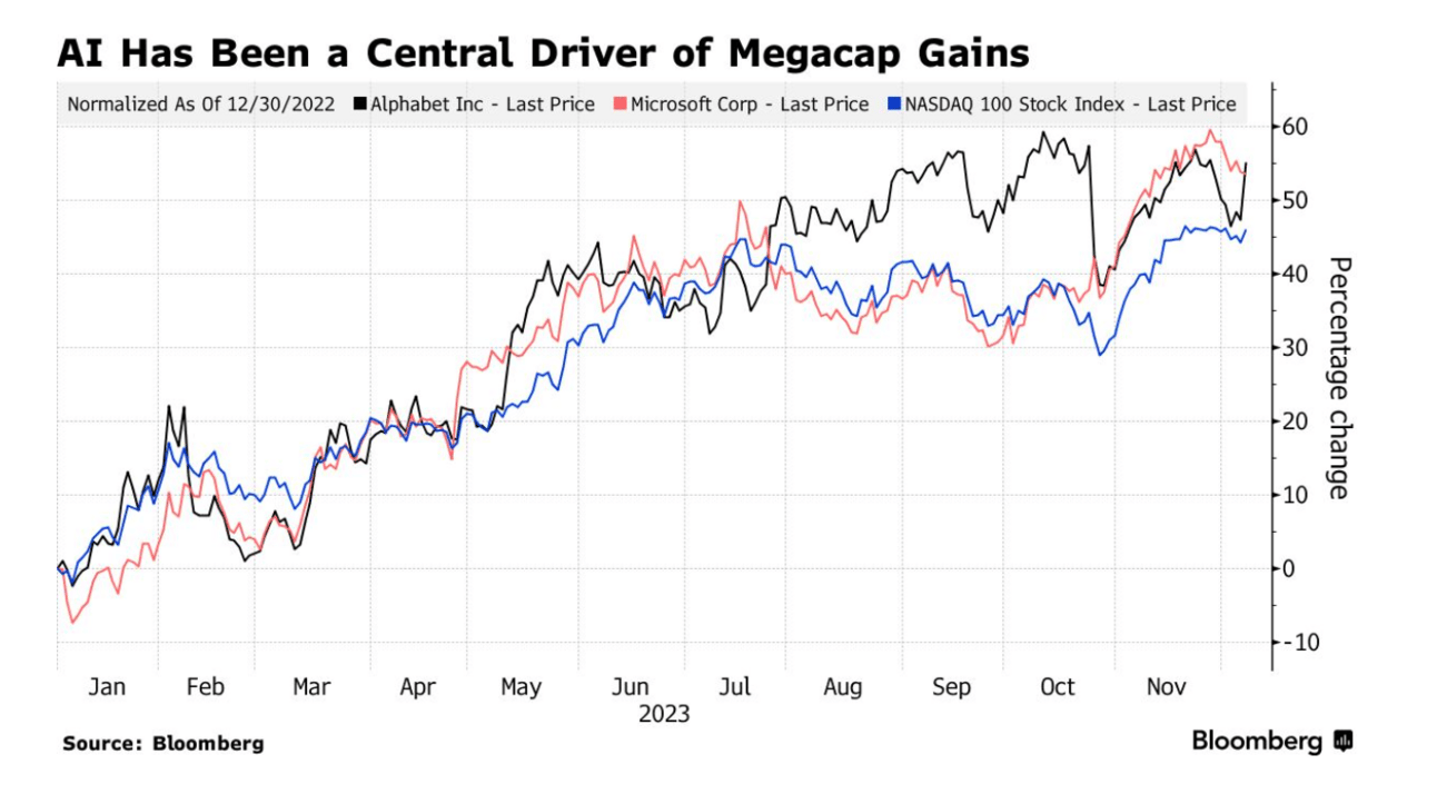 Googleβs announcement comes as AI has driven the broader market much higher in 2023, especially in megacap technology and tech stocks.