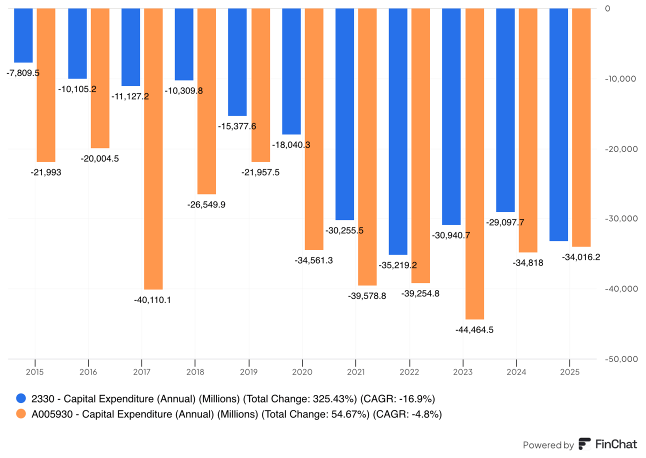 Semiconductor fabrication is among the most capital-intensive businesses on earth. A single advanced fab can cost more than $20 billion, and both TSMC and Samsung have been spending over $30 billion annually in capex to stay at the cutting edge.