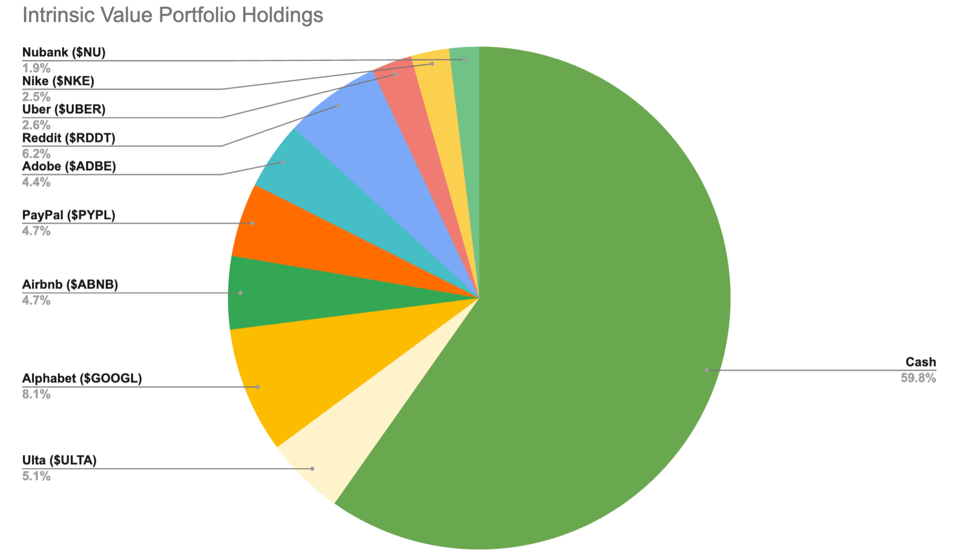 Reddit: At the time of writing, Reddit stock is up over 20%, climbing above $190! That makes Reddit our first βdoubleβ in just a few months, so weβre very glad to have entered the position when we did. Itβs easy to say that I wish we had made the position size larger, but given the information we had at the time, I donβt have any regrets. And at over 6% of the portfolio now (versus 2% initially), Reddit has increased its weighting all on its own.