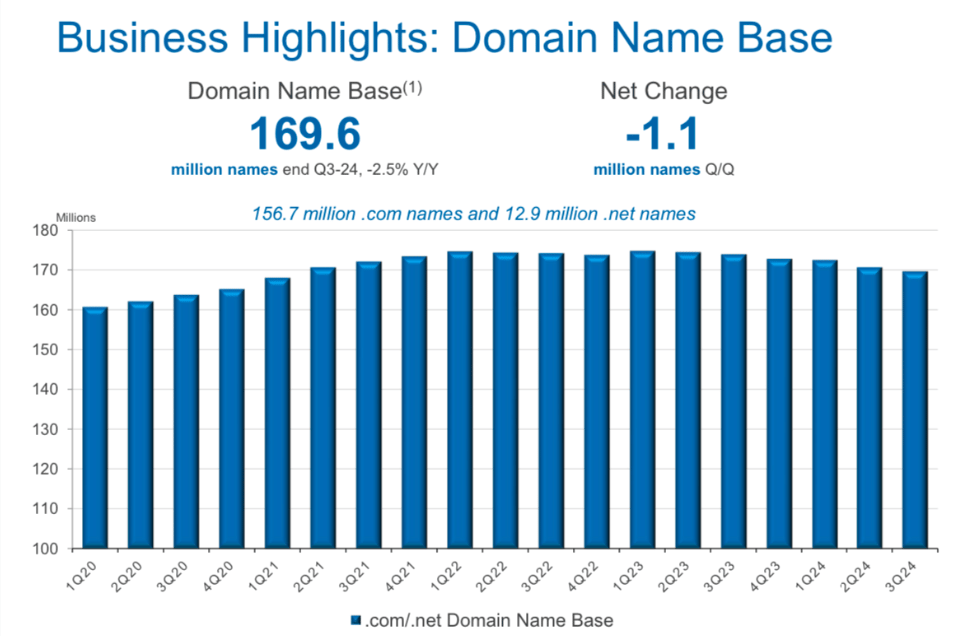 The most practical risk is that domain registrations fall off more than expected, especially given the effects of generative AI. If many searches can be replaced by chatbot queries or AI summaries, there may be structurally less need for as many websites, leading to a rapid falloff in domain registrations. This has yet to come to fruition and is another perspective on the same question at the center of Alphabetβs valuation: How will generative AI impact search?