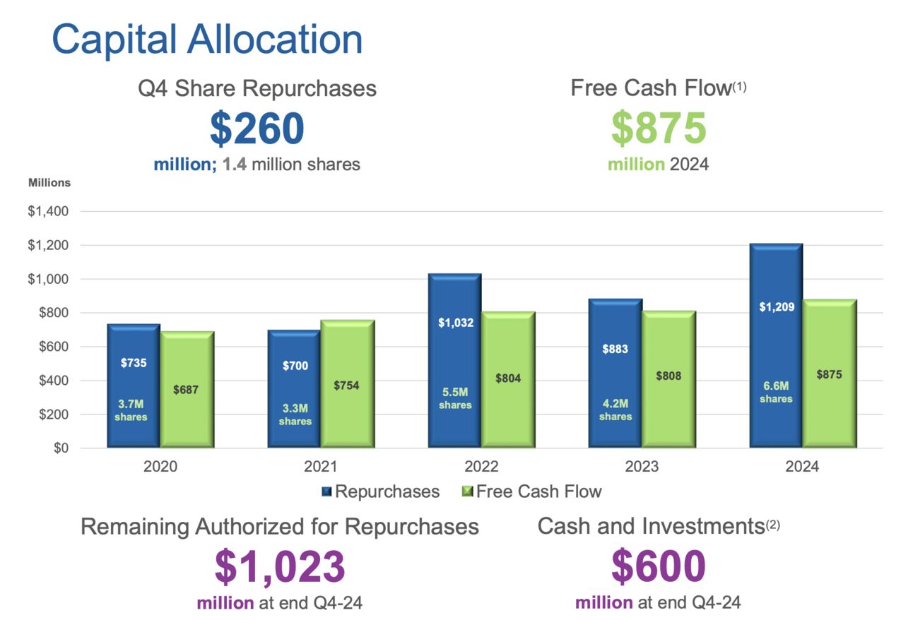 VeriSign puts most, if not all, of its free cash flows toward repurchasing stock