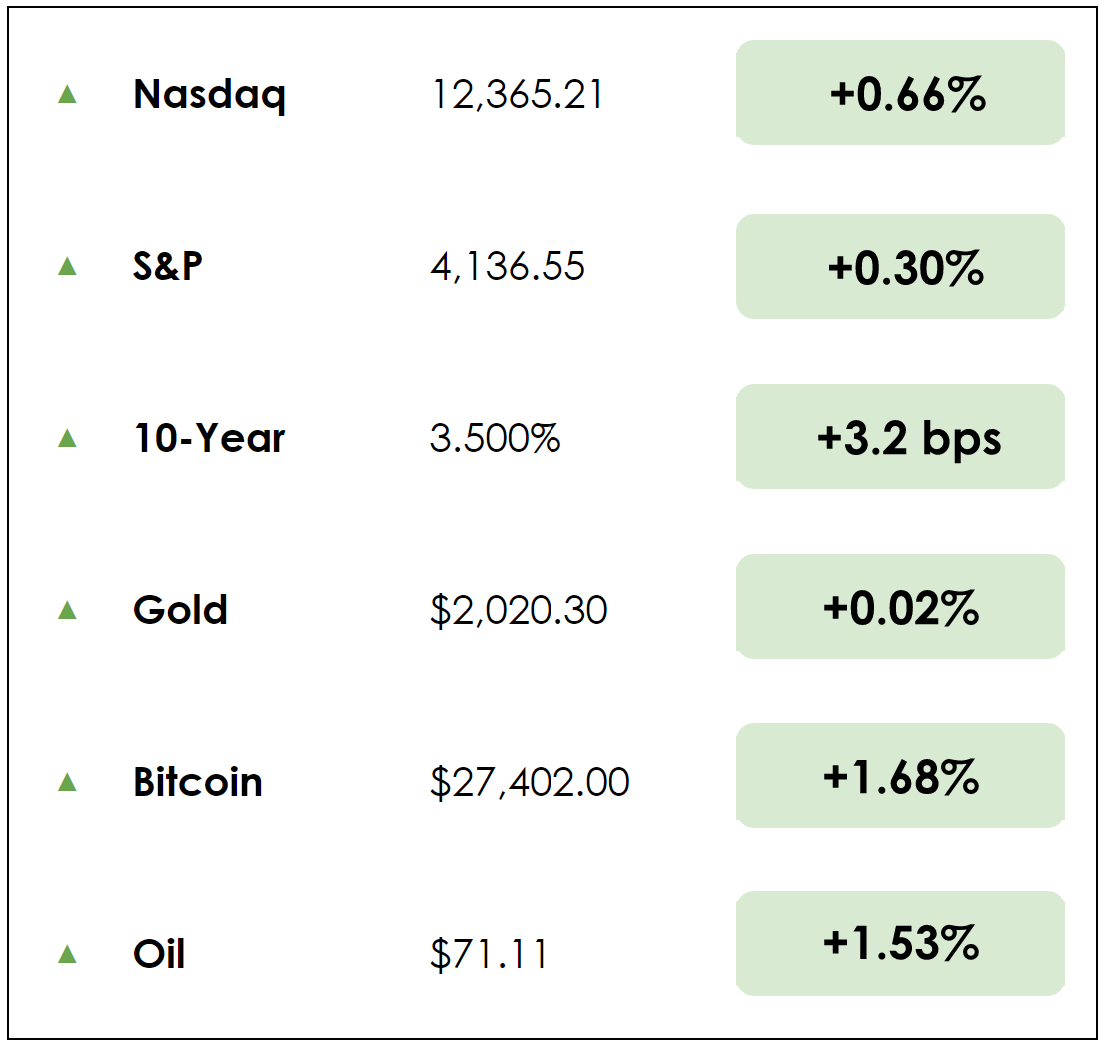 π Strong year-to-date performance from tech giants such as Apple and Microsoft has driven the S&P 500 higher in 2023 (about 8% thus far).